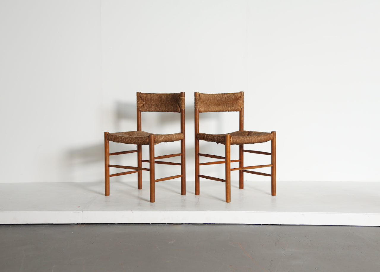 Original Charlotte Perriand / Robert Sentou Dordogne chairs, France, 1960s. Original rush seats and backs in very good condition with some minor restorations. The displayed price is for a single chair. Fast shipping worldwide.