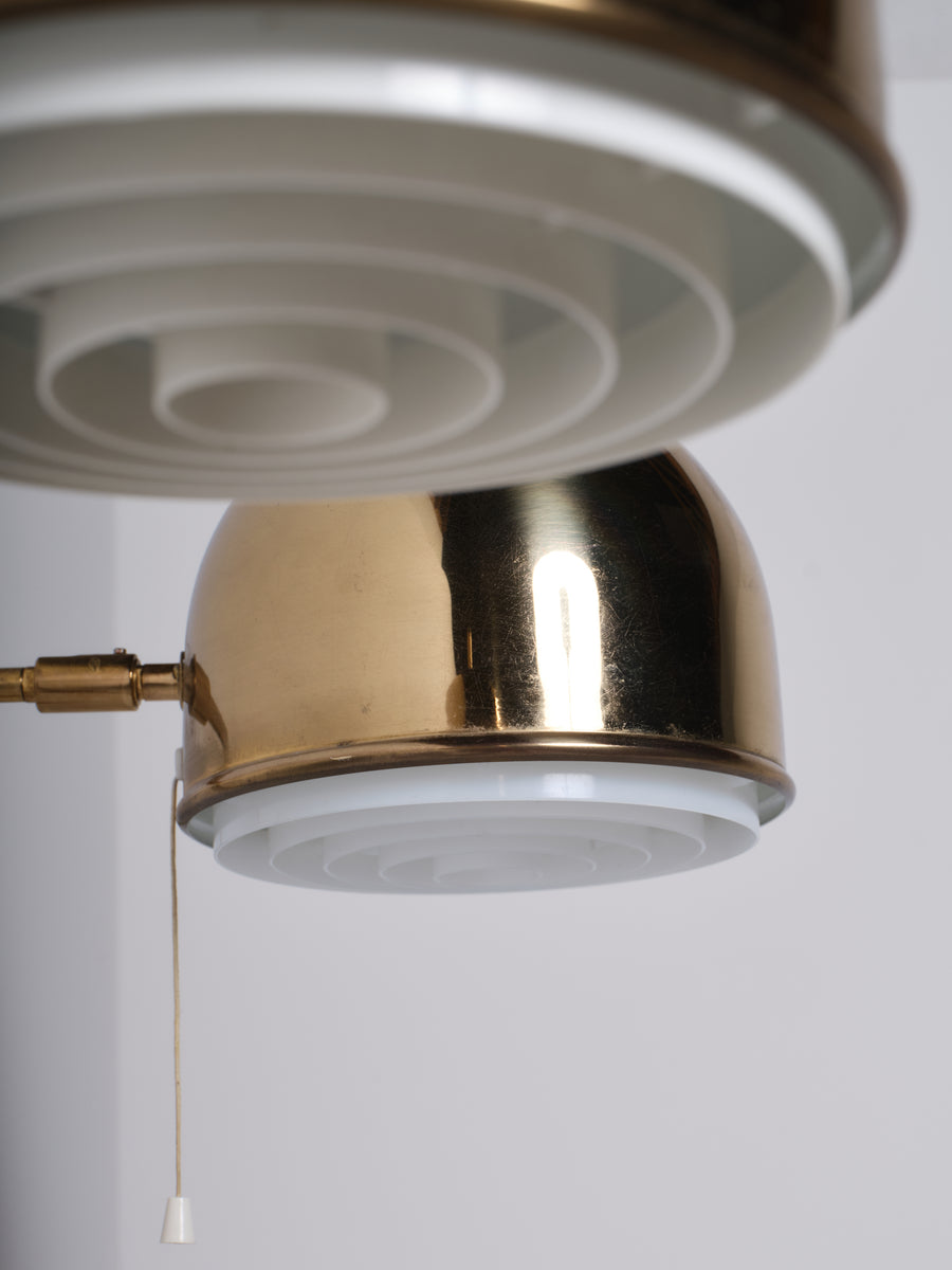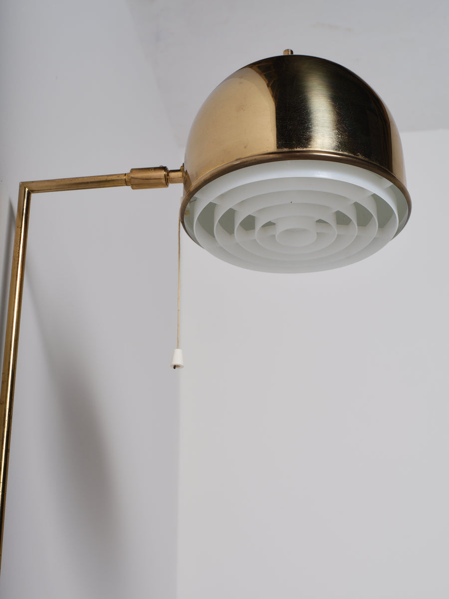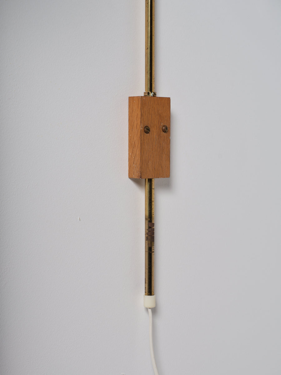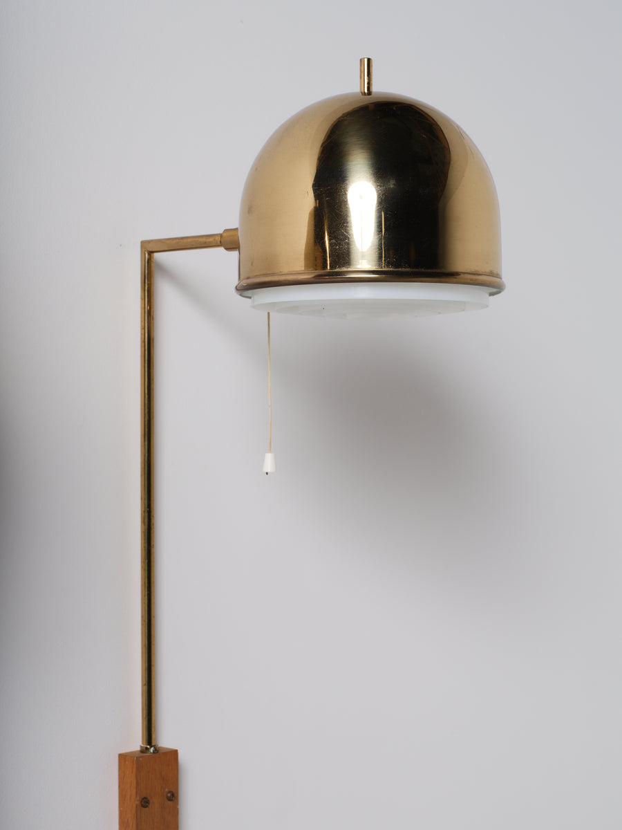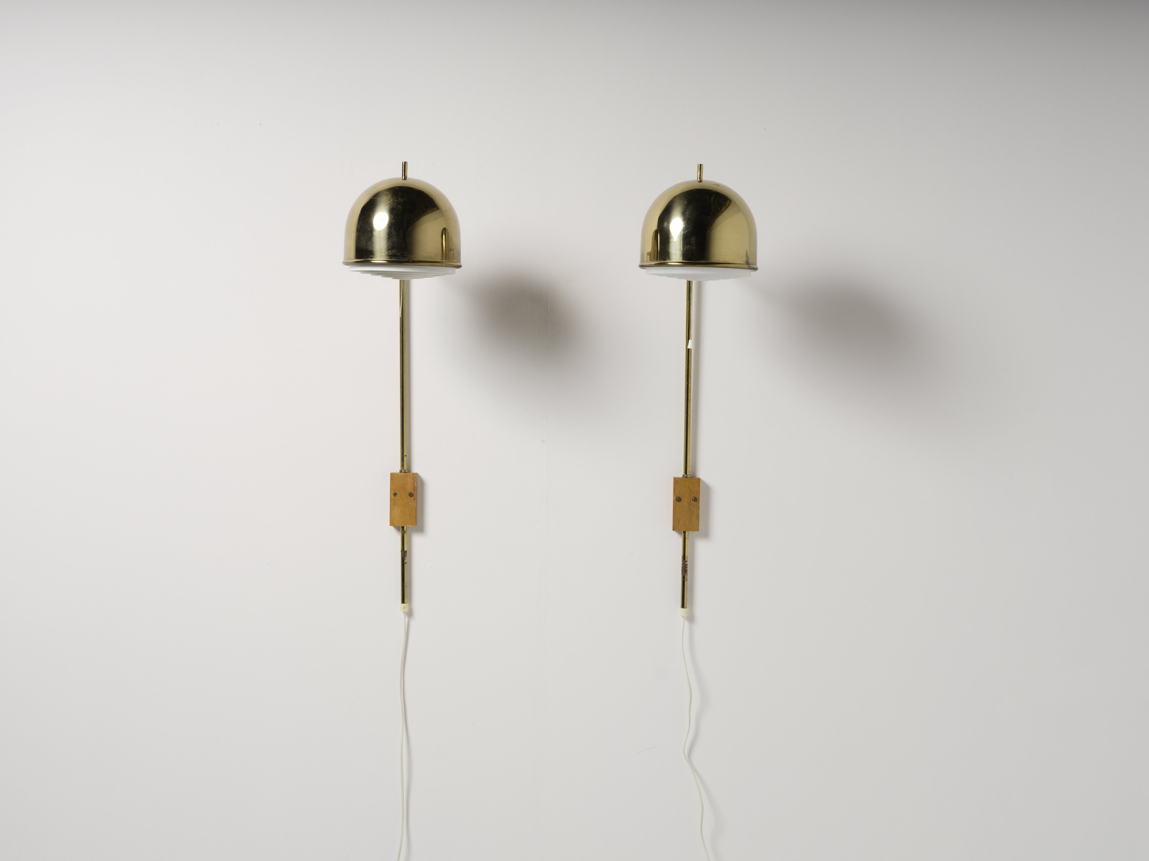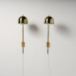 A nice pair of brass model V-75 wall lamps, designed by Eje Ahlgren for Bergboms, Sweden, 1960s. Priced and sold as a pair. These examples in great condition for their age. The lamp heads do articulate up and down. Fast shipping worldwide.