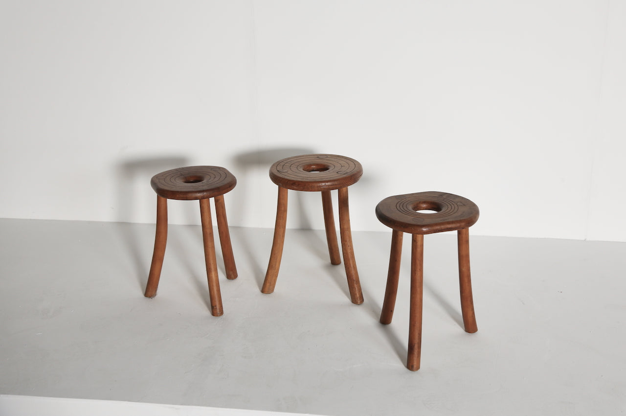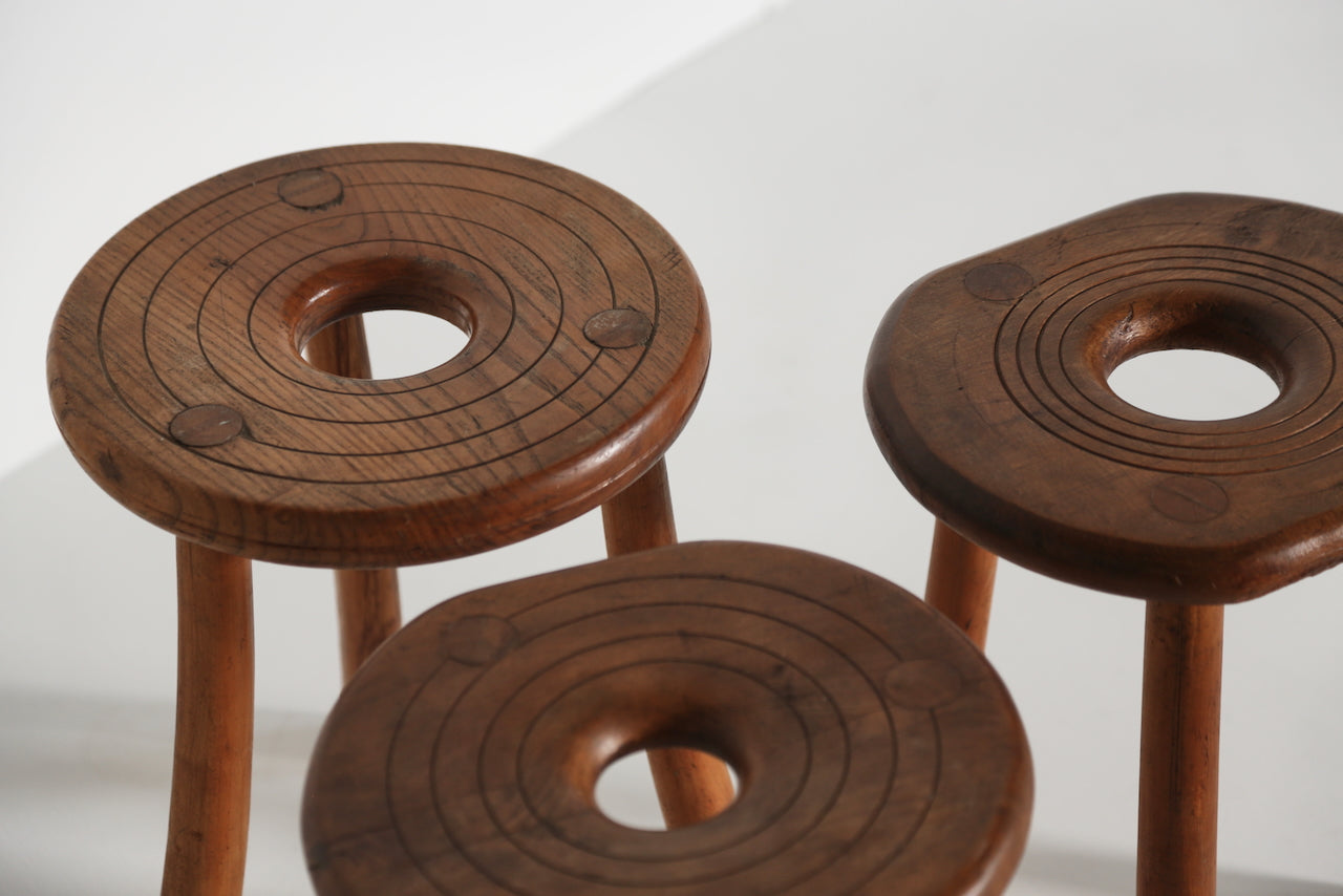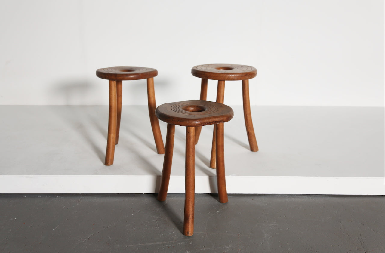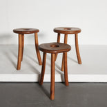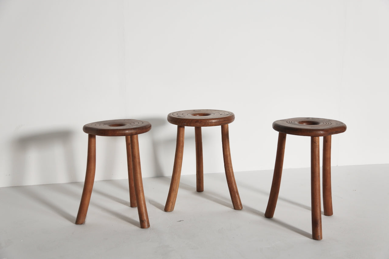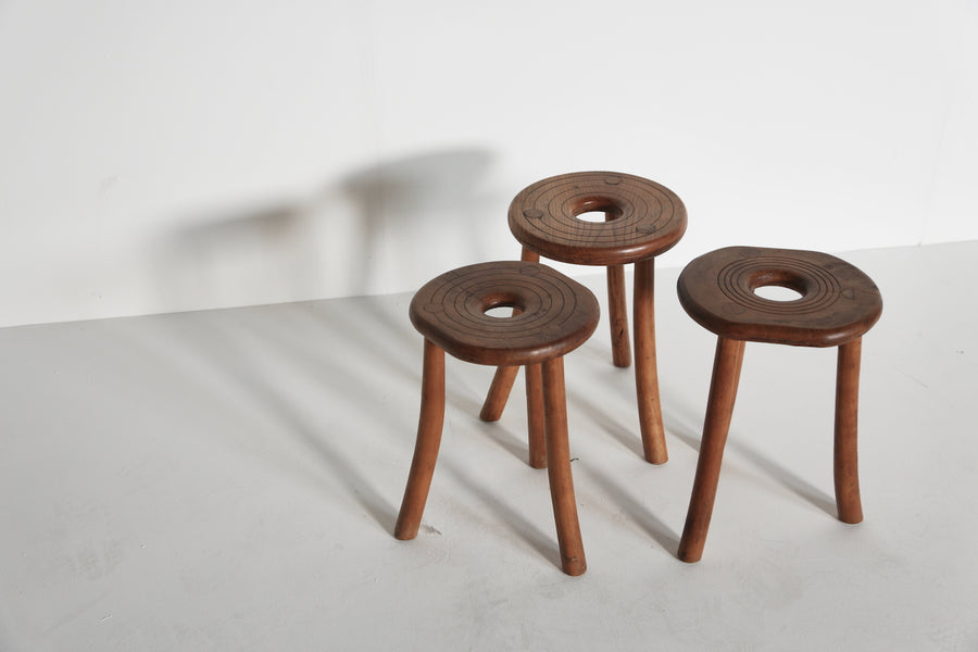 A set of 3 unusual stools, 1950s, France. Priced and sold as a set of 3. Fast shipping worldwide.