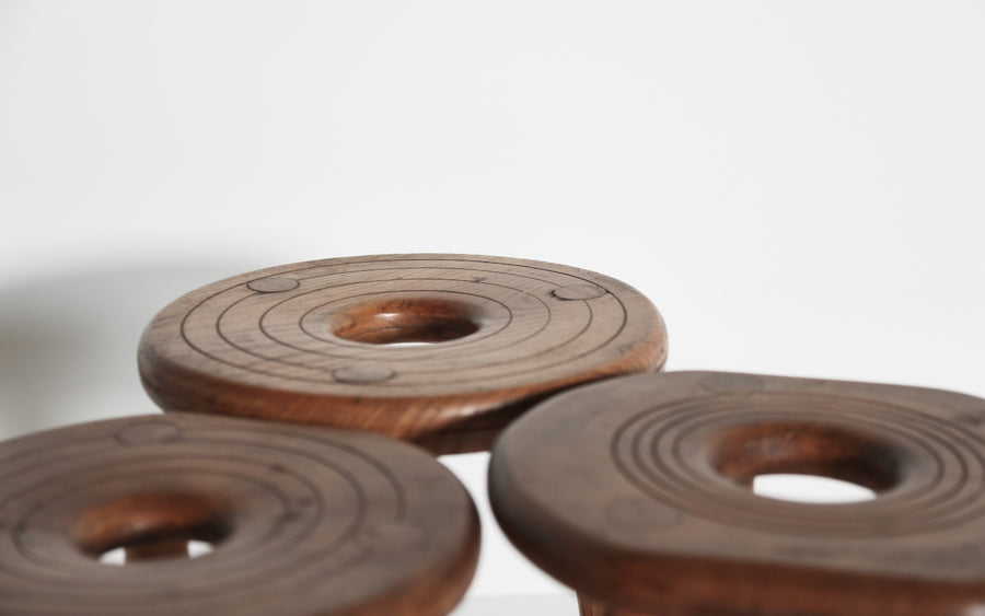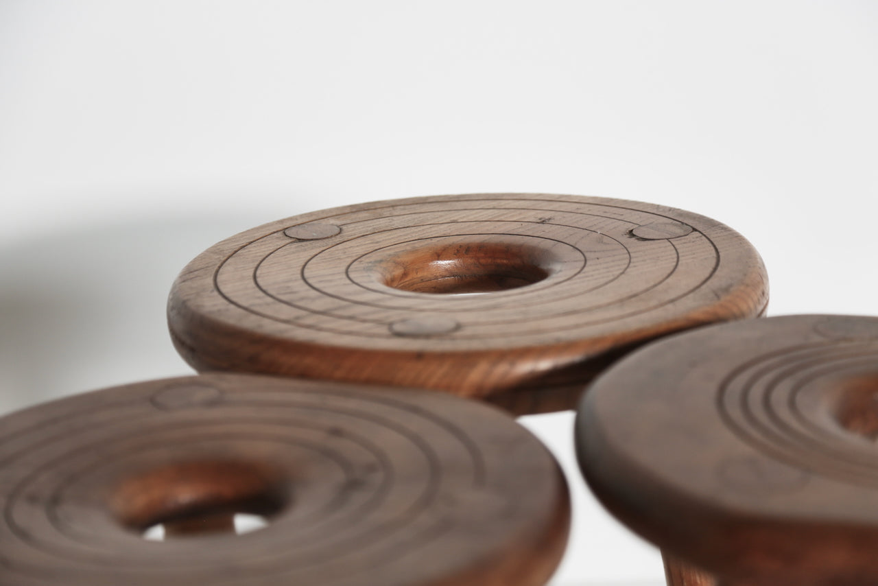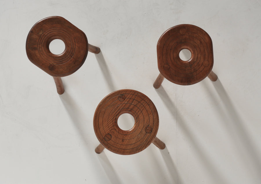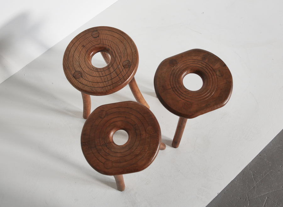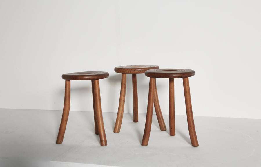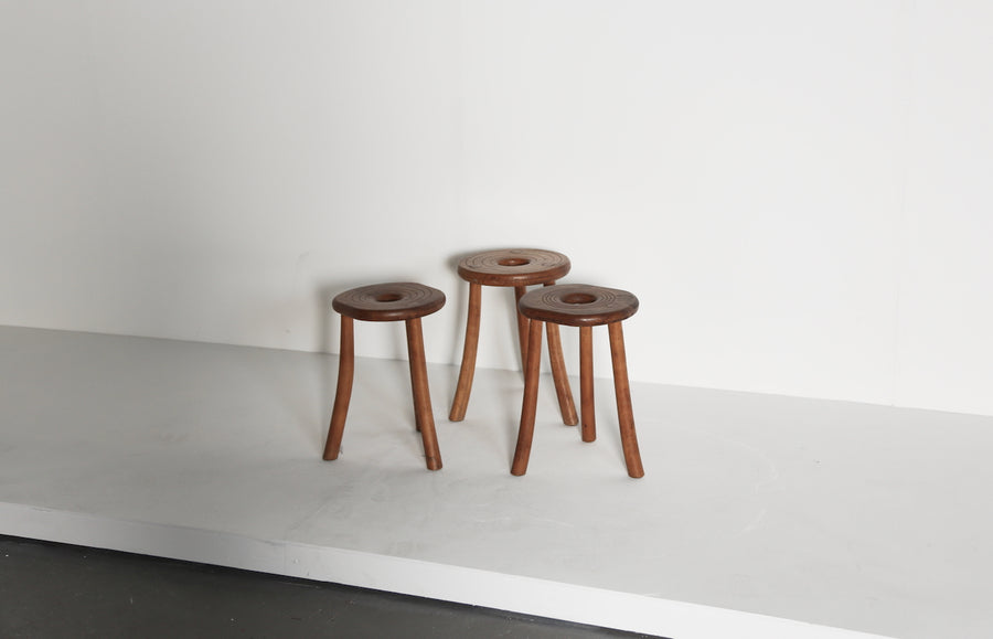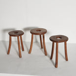 A set of 3 unusual stools, 1950s, France. Priced and sold as a set of 3. Fast shipping worldwide.